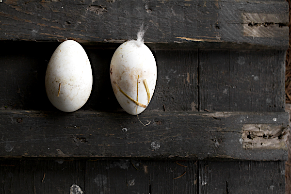 Sąsiedzka wymiana trwa w najlepsze! Ostatnio dostaliśmy jajka gęsie. Żółtko – przepyszne! Zawiera dużo witamin i jeszcze idealne proporcje kwasów omega-3 i omega-6, beta-karoten oraz retinol.