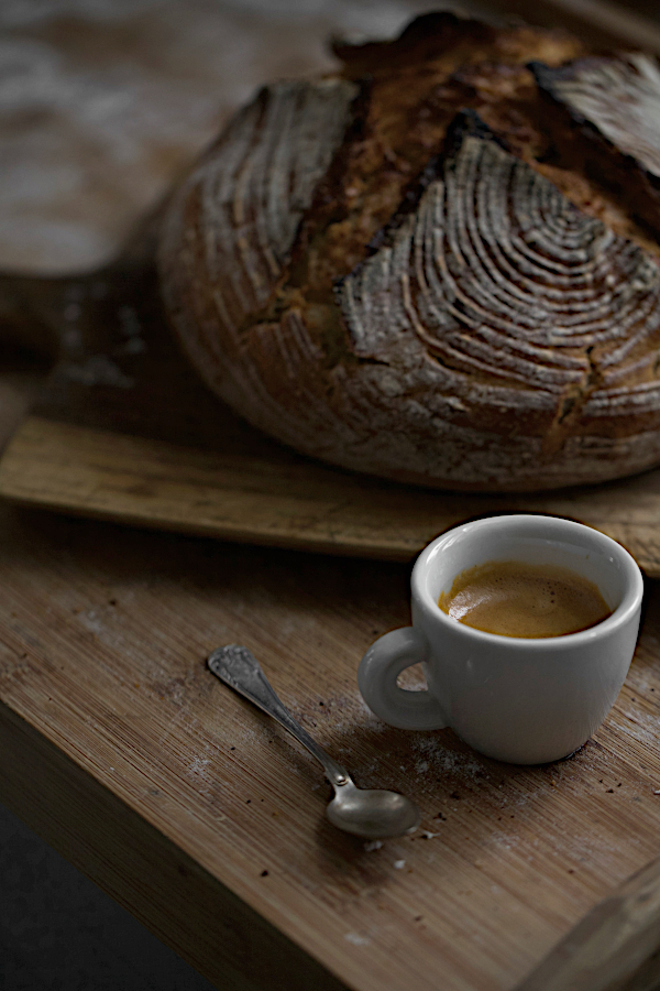 Nie dziwi nic, że na pierwszy ogień (tuż po powrocie) poszedł chleb! Pogoda cudownie dopisała i można było cały proces pieczenia chleba przygotować w letniej kuchni.